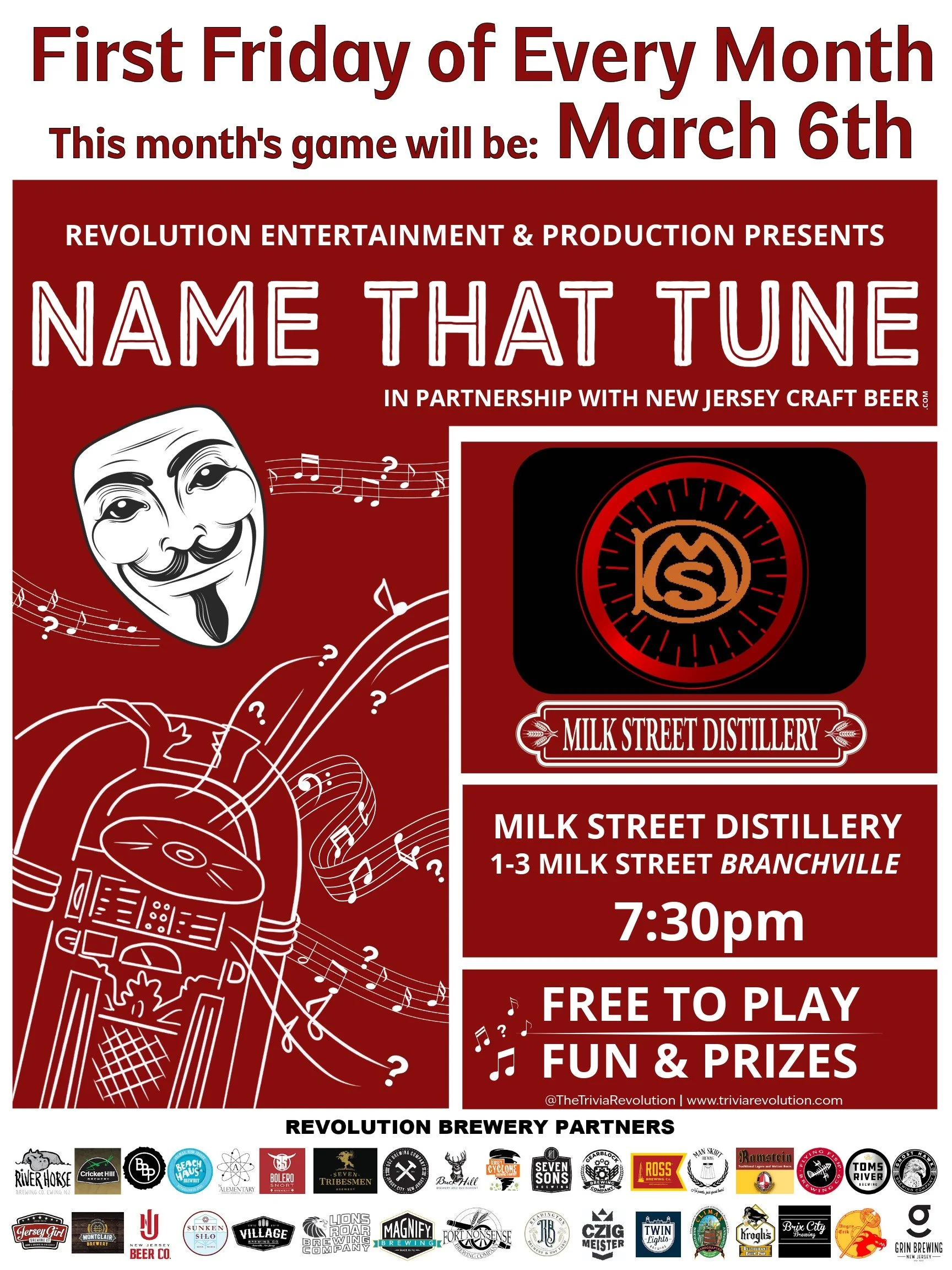 Join us this Friday night for some fun, music and prizes. Trivia Revolution brings us Name That Tune.